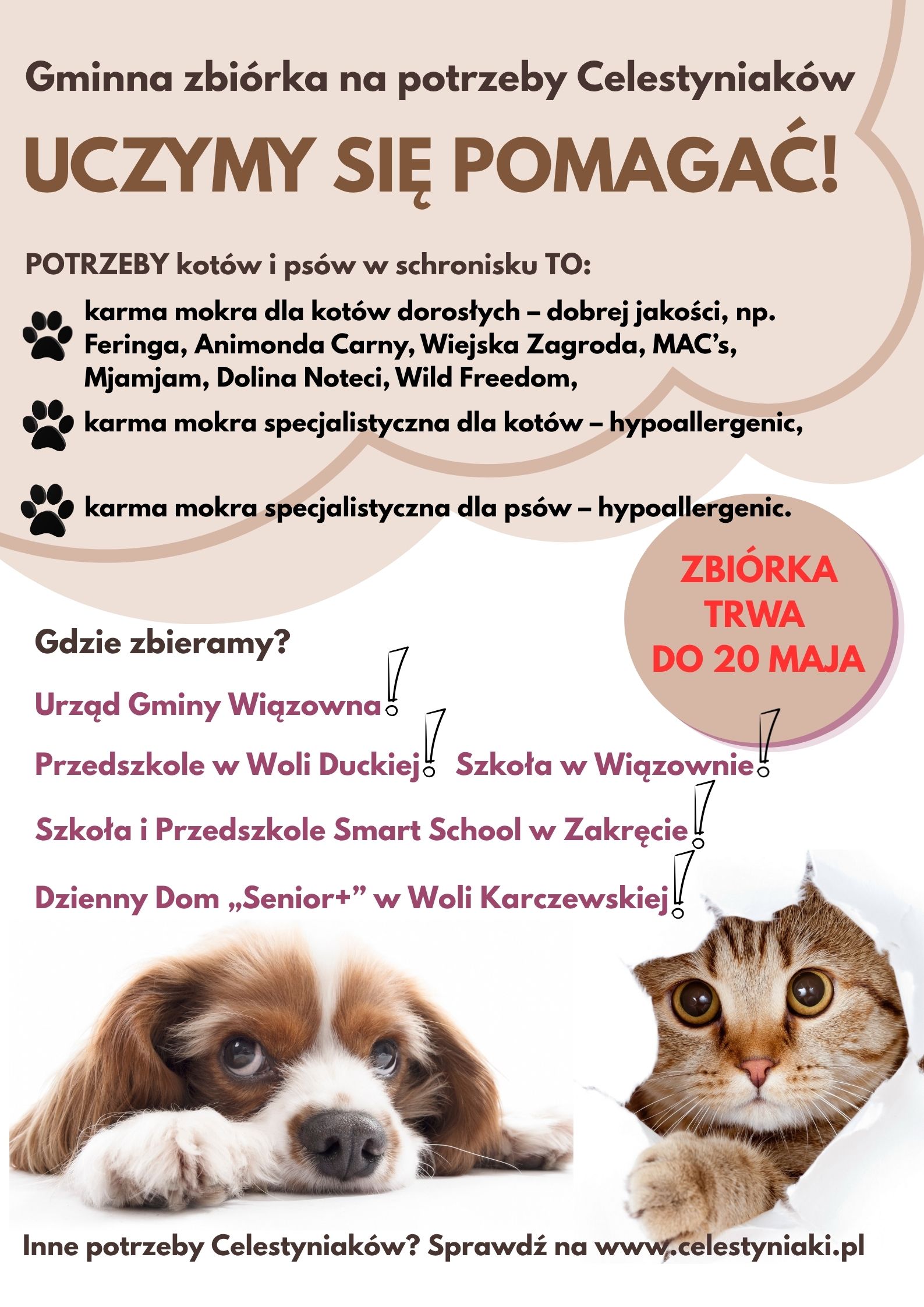 Akcja potrwa do 20 maja. Inne potrzeby Celestyniaków? Sprawdź na www.celestyniaki.pl.